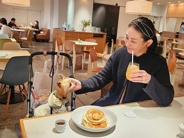 いつもテラス席で食事やスイーツを楽しんでいるお店で、天候などを気にせずに店内で愛犬と過ごせることがとても嬉しいです。