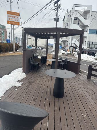 2月に行ったので雪があり座れませんでしたが天気が良い日はここに座ってご飯を食べると気持ちよさそうですね〜。