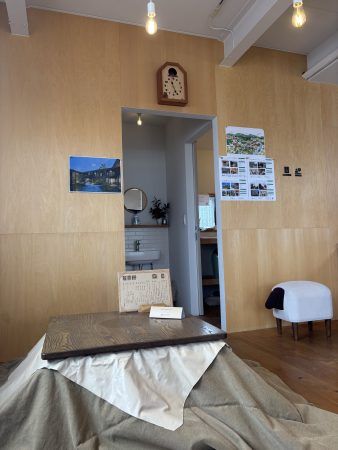 2階がトラスホームさんのオフィスになっています。トラスホームさんは,小原田の里を守る里守(さともり)として不動産賃貸管理と家主業をメインで行っている会社です。