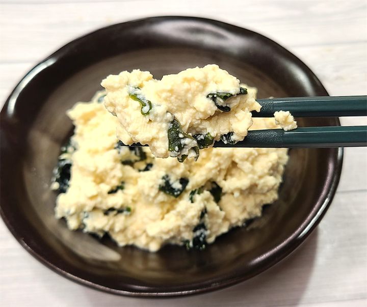 今回紹介する「白和え」はそんなふらおさんがSNSで紹介していたレシピです。豆腐の中に乾燥わかめを入れて味付けするだけという、聞くだけでも爆速そうな予感はします。ですが「豆腐の水切りはしなくていいの?」「めんつゆの味付けで大丈夫?」など、不安があるのも確か。果たして、爆速で作る「白和え」はどんな仕上がりになるのでしょうか。
