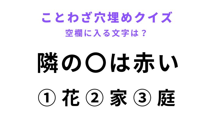 ことわざ「隣の〇は赤い」には、なんの文字が入る?