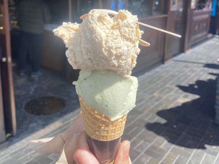 「ここのピスタチオジェラートが本当においしい!」と地元の方に教えてもらいました。