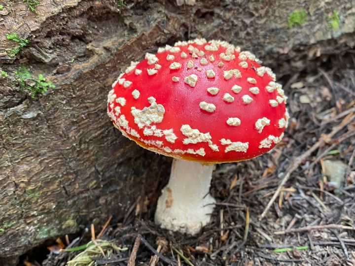 ハイキングコース沿いに生えている鮮やかなキノコPhoto by Yuka