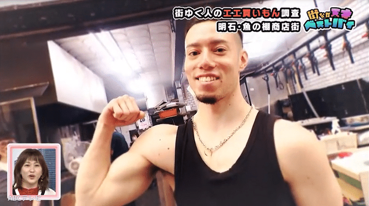 天才ピアニストが兵庫県明石市・魚の棚商店街で筋肉ムキムキ黒タンクトップの姿にズギュン! イケメンの意外な職業とは?