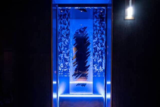 3基あるエレベーターはそれぞれ異なるカラーが輝く極彩色の空間です。