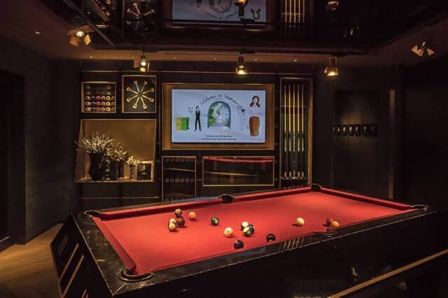 ロビーから大階段で、中2階を経て上る2階のラウンジは、照明を落としたバーを思わせる大人の空間。ゆったりと寛げる上質なソファーや半個室のようなテーブル席が設けられ、色鮮やかなビリヤードテーブルを設置。滞在中は自由に遊ぶことができます。