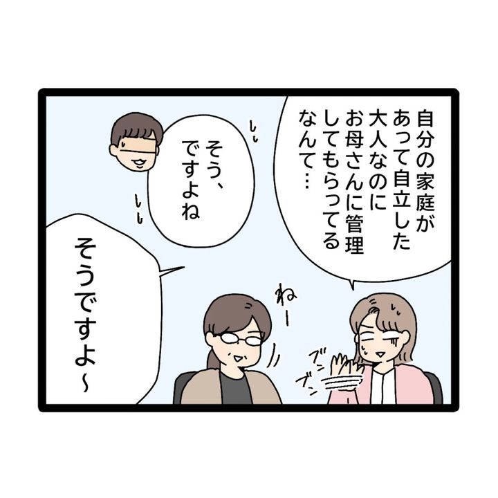 そしてドン引いたような様子で「自分の家庭があって自立した大人なのにお母さんに管理してもらってるなんて・・・」とユミさんは言いました。