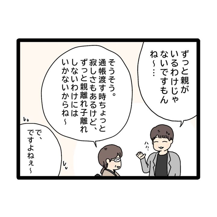 コウタさんは周りに合わせようと「ずっと親がいるわけじゃないですもんね~・・・」と言うとかがみさんは「そうそう。通帳渡す時ちょっと寂しさもあるけど、ずっと親離れ子離れしないわけにはいかないからね~」と懐かしそうに話しました。