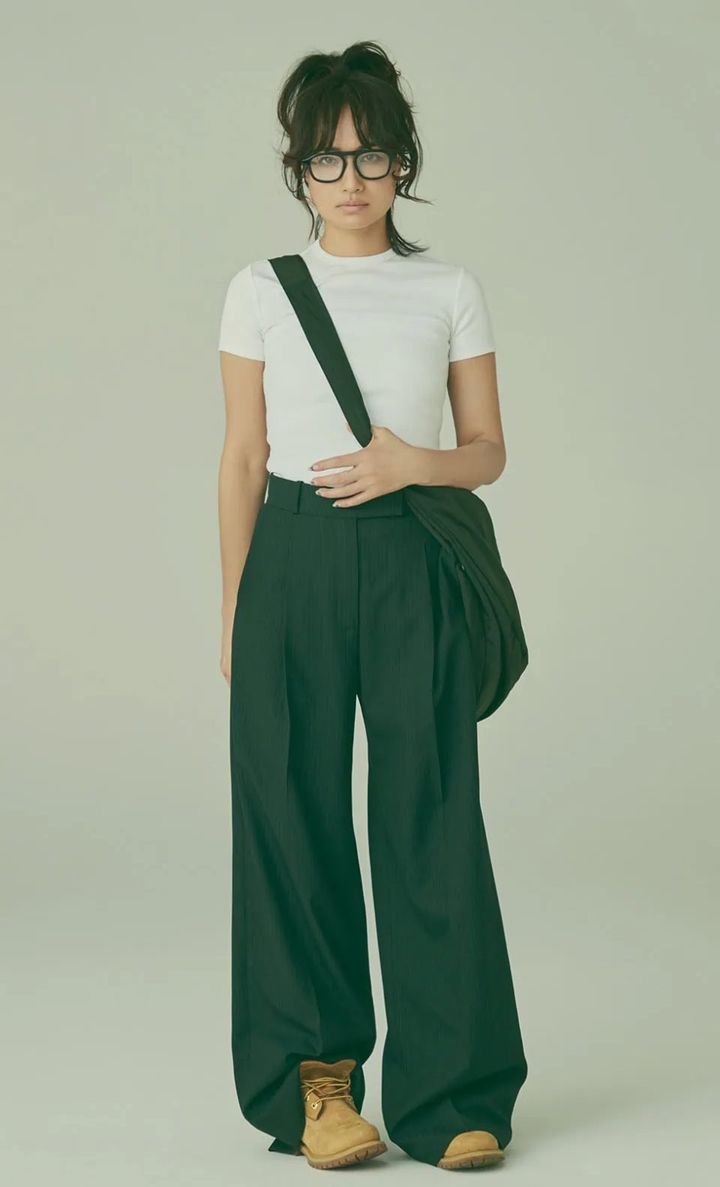 ブーツ¥28,600(ティンバーランド/VF ジャパン)、Tシャツ¥8,800、バッグ¥26,400(共にカルバン・クライン/カルバン・クライン カスタマーサービス)、スラックス¥57,200(バウム・ウンド・ヘルガーデン/S&T)、メガネ¥41,800(スプリング ストリングス/ショールーム シャルメール)