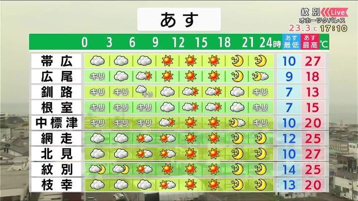 あす16日(金)は25度まで上がる紋別です。室内でも風通しをよくしましょう。