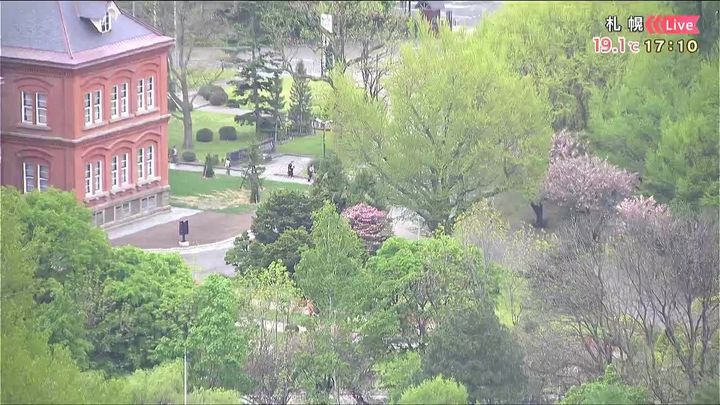 札幌の道庁前庭です。道庁など市内所々で八重桜が見ごろを迎えています。