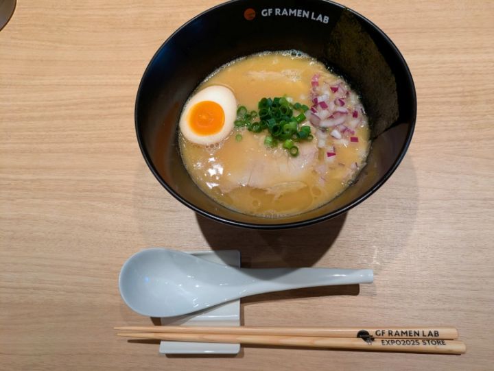 お昼ご飯はビーフンで有名なケンミン食品のお店「GF RAMEN LAB」でGF(グルテンフリー)の米粉ラーメンを食べました。写真は鶏白湯しょうゆラーメン(2,600円)。鶏白湯は数量限定ですが、しょうゆラーメンやビーフン、米粉のシフォンケーキもあります。こちらは麺だけでなくスープ、トッピングに至るまですべてがグルテンフリーだそう。もっちりした麺が美味しかったです。