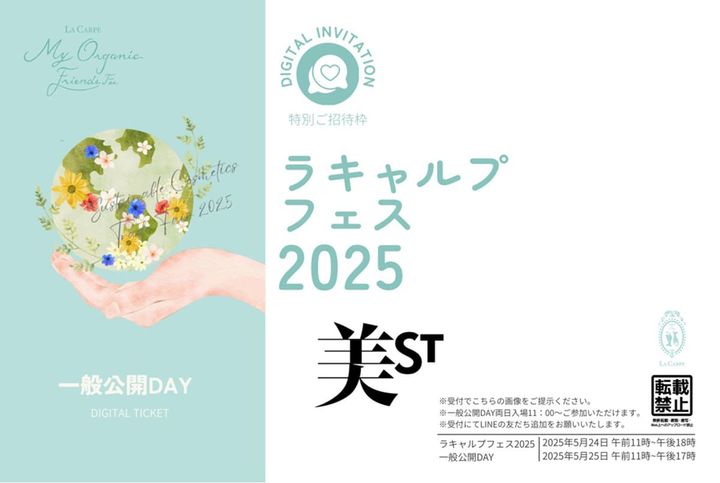 こちらの美STデジタルインビテーションを提示のうえ、当日受付でラキャルプ公式LINEの友達登録をした方向けに、一般公開枠に無料ご招待。