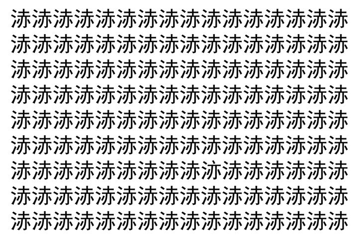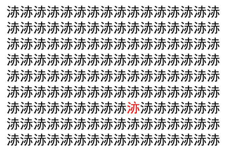 画像の中には、「浾」という漢字が縦に9行、横に16個並んでいます。 全部で144個となりますが・・・、そのうち1つは「異なる漢字」となってますよ!!