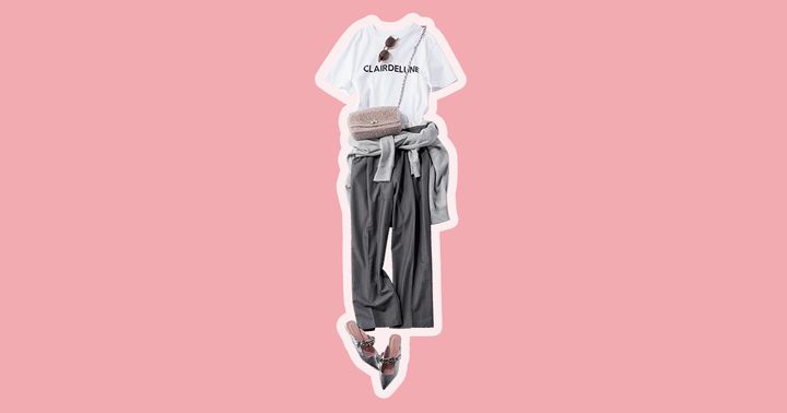 3. ロゴT×グレーワイドでつくる、“頑張らないのにおしゃれ”な大人カジュアル