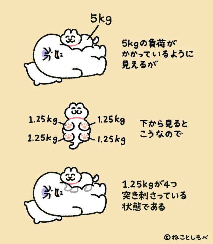 3. 「5kgの猫が乗っている状態とは…」猫飼いが大共感の投稿に7.3万いいね「致命傷を負うことも」