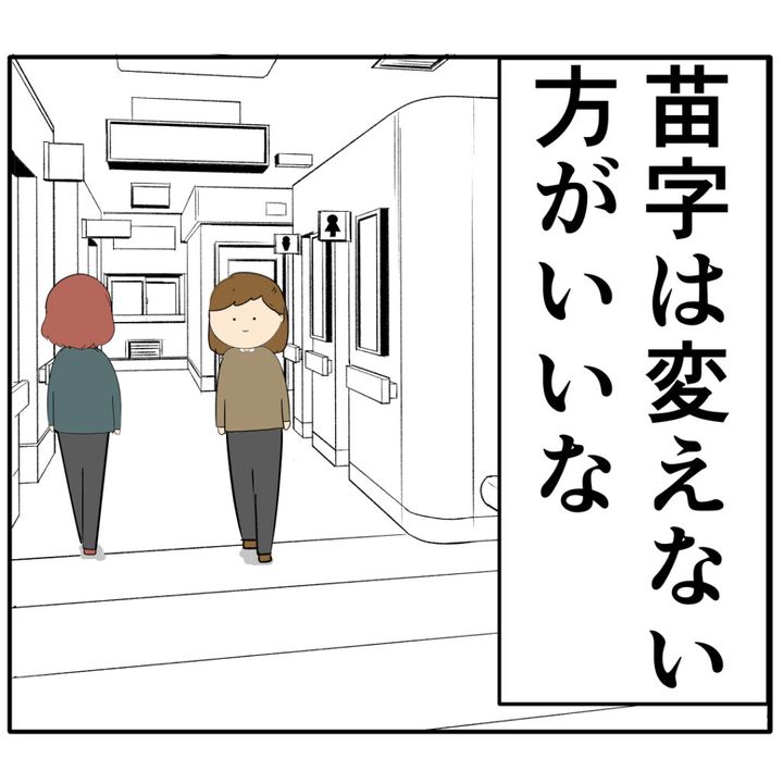 入院中のめいさんが、離婚後のことについて「あかりの学校生活の事を考えたら苗字は変えない方がいいな」「離婚の事をあかりに何て言おう」などと考えながら病院の廊下を歩いていると、一番会いたくないジュリ実さんと思われる人の姿を見つけ、めいさんは驚きのあまり思考が停止し立ちすくみます。