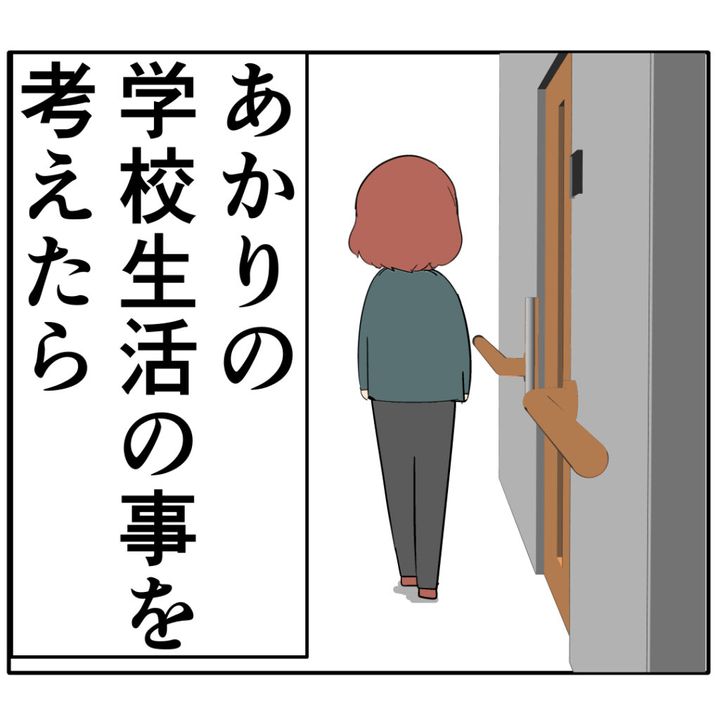 病院の廊下を歩きながら、めいさんは離婚した後のあかりちゃんの学校生活のことを考えていました。