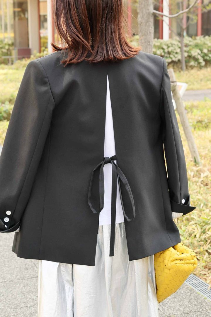 シャイニーさを足して、ジャケットを新鮮な着こなしに