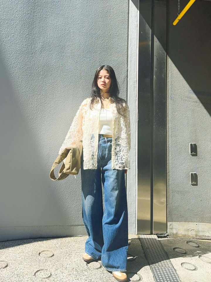 シャツ¥15,240、キャミソール¥3,850、デニムパンツ¥15,180、バッグ¥10,320/以上すべてマウジー、スニーカー¥16,500/アディダス オリジナルス(以上すべてバロックジャパンリミテッド)、その他/本人私物