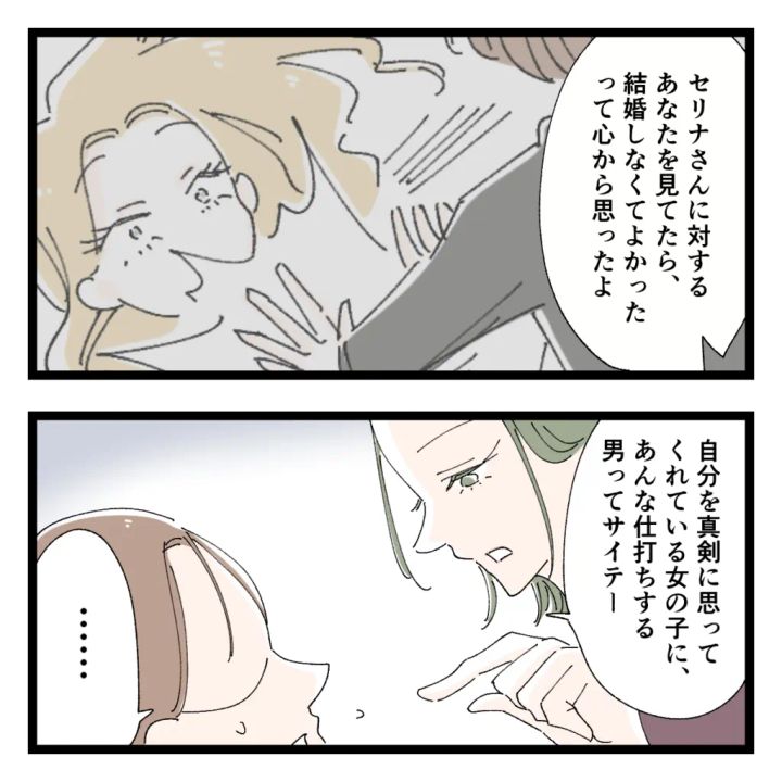 「セリナさんに対するあなたを見てたら、結婚しなくてよかったって心から思ったよ。自分を真剣に思ってくれている女の子に、あんな仕打ちする男ってサイテー」サクラコにそう言われ、言葉も出ないハルキ。