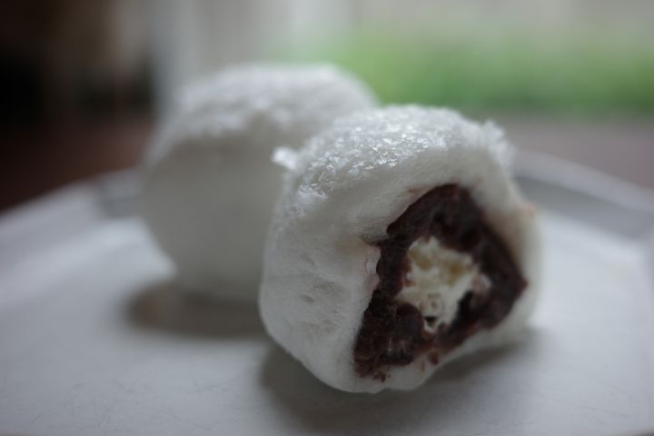 とろけるようなお餅のやわらかさ、上品なあんこと濃厚なクリームの組み合わせ。頬張ると、わりとガツンと甘さを感じるが、食感の軽やかさと相まってあっという間に食べられてしまう。当日限りのこのふわふわとした食べ心地は、甘いもの好きに喜ばれること間違いなしの品だろう。