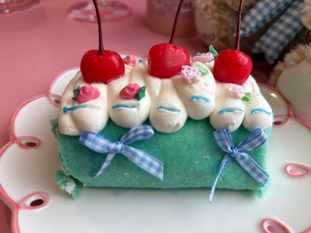 ファンタジーソーダの味は、いわゆるメロンソーダの味です。クリームの下にアイスクリームがのっていて、ストローがハートの形になっています。下のほうにピンクのゼリーが入っていてホントに可愛い。このカフェでしか味わえない気持ちになります。私は昭和世代なのですが、懐かしい気持ちがよみがえってきてうれしかったです。