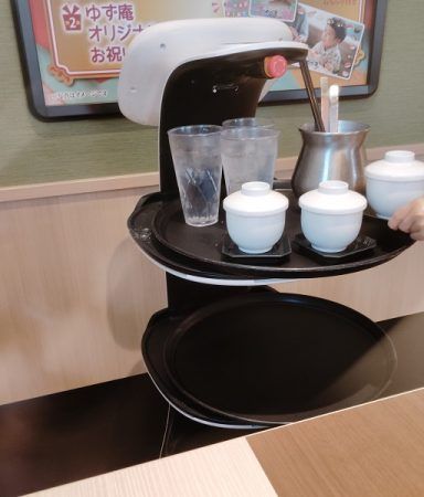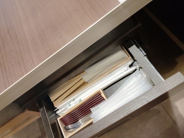 タッチパネル形式で、テーブル横におしぼりや箸も収納されていて広々と使えます。 小さいお子様連れにはありがたい仕組み!
