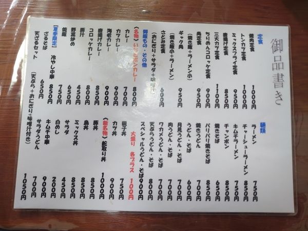 その昔、常連の尚(ひさし)さんが焼き飯とラーメン(小)をセットでよく注文していました。当時はセットメニューがなかったので、他のお客さんも「尚のヤツにして」と注文するようになり、その後「尚定食」というメニューが誕生しました。