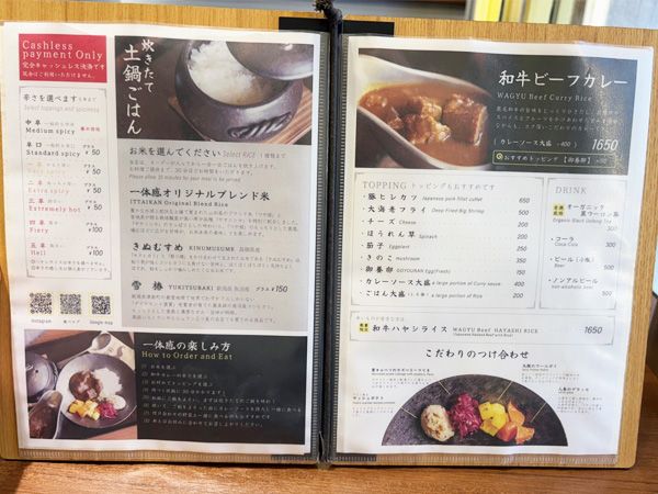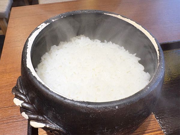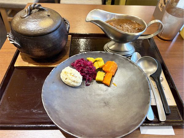 朝に時間がたっぷりある日にぜひ訪ねてほしいのが、東銀座にある「一体感」。土鍋ごはんと甘辛カレーが楽しめる店です。こちらはオーダーとともに土鍋でお米を炊くため、カレー到着まで30分ほど待ちます。米は3種の米から選べます。