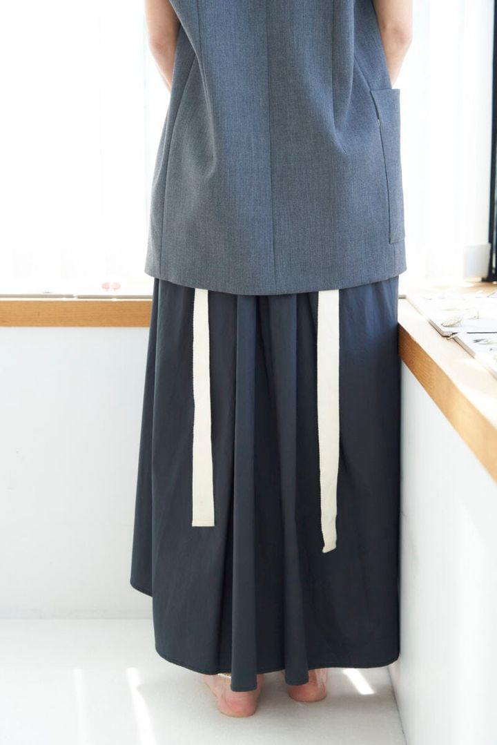 ジレの裾から見えるのは、ホルターネックワンピースのリボン。「結ばずにたらすと、しっぽのようで可愛いんです」と内藤さん。前から見るとクールなのに、後ろ姿は甘めで遊び心があります。