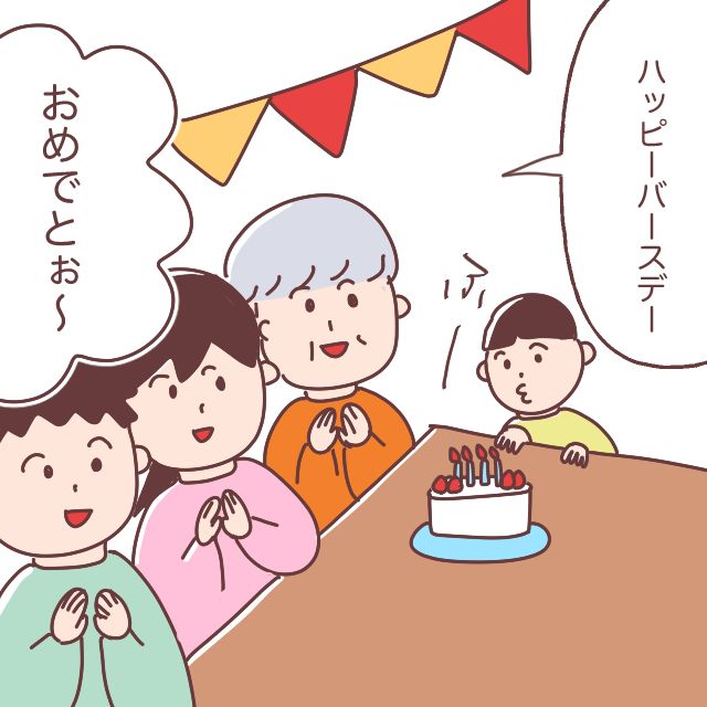「ハッピーバースデー!」「おめでとぉ~」私と夫と義母の3人でお祝いの言葉を伝えると、ユイトが「ふぅーっ!」とケーキのろうそくを吹き消しました。