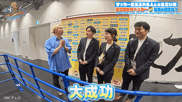 国立競技場初の男女ダブルヘッダーは、大成功で無事に閉幕! なお、この様子は、しんいちの冠番組『サッカー応援するよ ~お見送り芸人しんいちのボールと奏でる出会い旅~』(ABCテレビ)5月13日深夜放送回で紹介された。