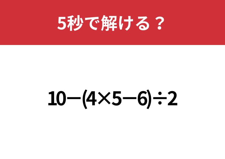 大人でも間違える人が多いかも!?「10−(4×5−6)÷2」5秒で解ける?