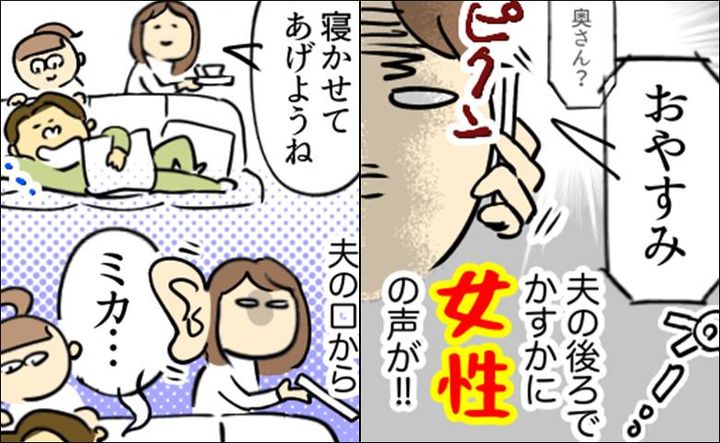 娘と一緒に夫の様子を見ていた私が「しばらく寝かしておいてあげよう」と布団をかけようとしたそのとき。なんと、夫が寝言で「ミカ……」と女性の名前を口にしたのです!