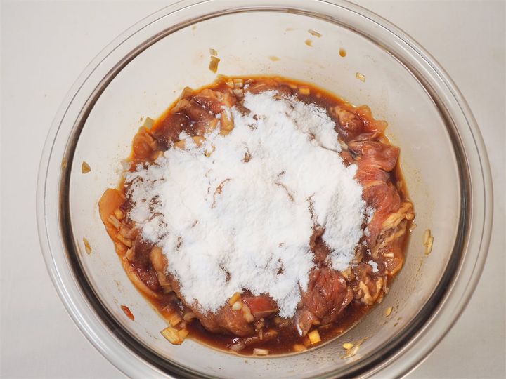 ここで米粉を入れることで、豚肉に調味液がまとわりつき更に味が染み込みやすくなるとのこと。