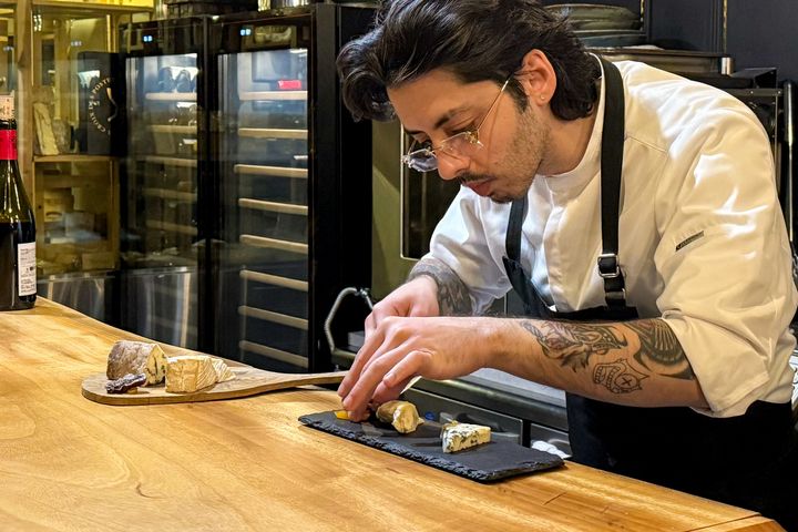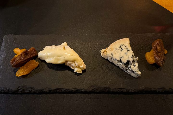 メイン料理の後には、チーズプレートが登場。シェフが当日の料理に合うおすすめのチーズを2種類セレクトしてくれます。