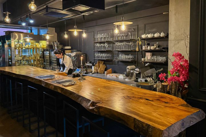 8席すべてがカウンター席で、セミプライベートな至福のひとときを過ごせます。カウンターの向こう側ではフランス語が飛び交い、まるでフランスへ旅行に来たような気分に。