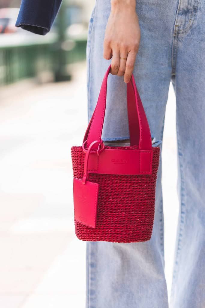 赤バッグをアクセサリー感覚で投入!ワン・ツーコーデを一気に底上げ