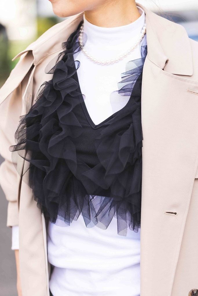 シックな色に落とし込めば、かわいいフリルおかわりで盛れる