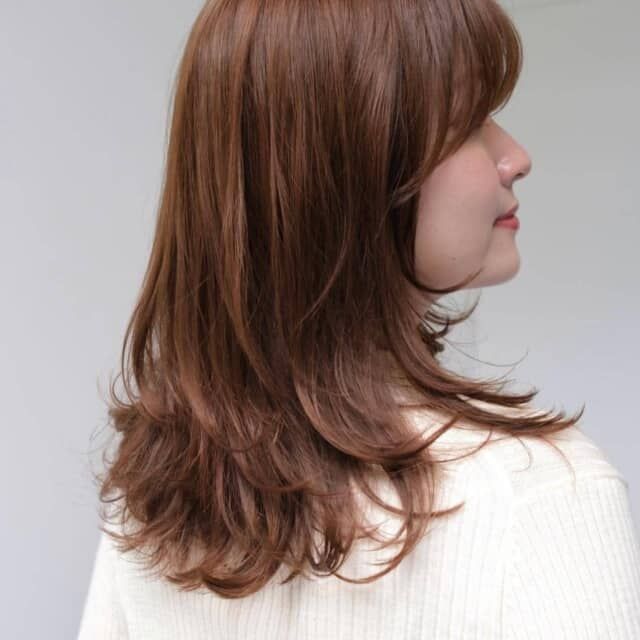全体の印象が重たくなりがちな人は、くびれシルエットで華やかさをオン。顔まわりに自然なレイヤーを入れるだけで、ふんわり立体感が生まれ、360度アカ抜けた印象に仕上がります。