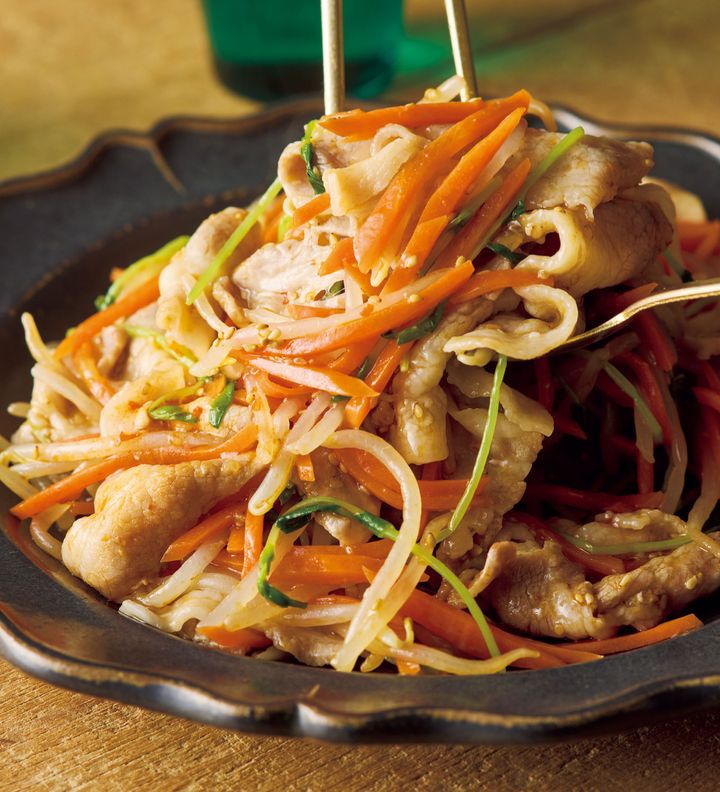 1食でどっさり200gの野菜が摂れる⁉『もやしと豆苗、豚肉のナムル風オイル蒸し』