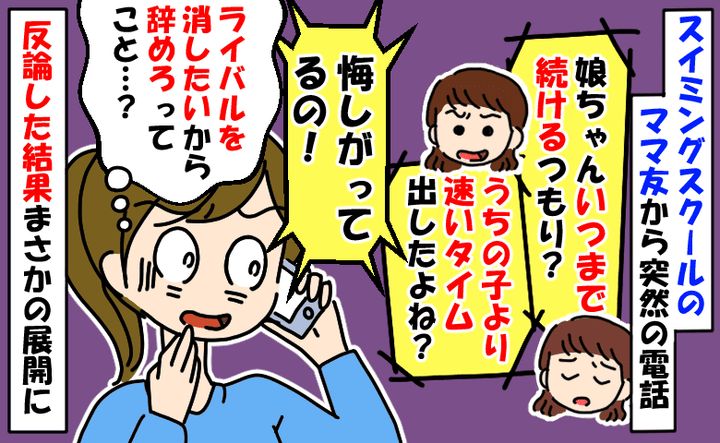 水泳教室のママ友「教室いつ辞めるの?うちの子が負けて悔しがってるの!」反論するとまさかの展開に