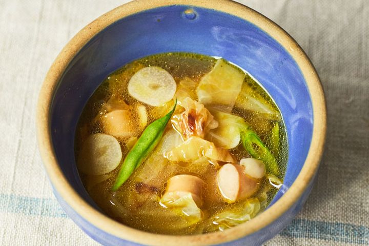 ◎常備菜で作る、キャベツとウインナーソーセージのスープ