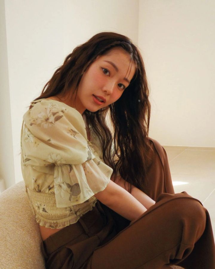 アップで撮ったとき、気になってしまいがちなお胸大きめさんには、締め色のトップスがおすすめ♡