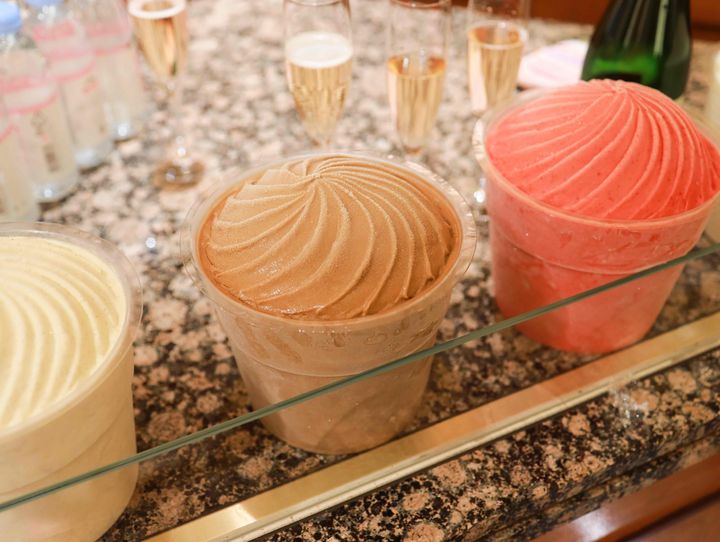 『グラス & ソルベ』各648円(税込)は、シグネチャー・アイスである「ショコラ ノアール」をはじめ「カフェ エスプレッソ」「ヴァニーユ マダガスカル」「フレーズ」「シトロン」の5つのフレーバーをラインナップ。