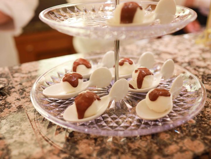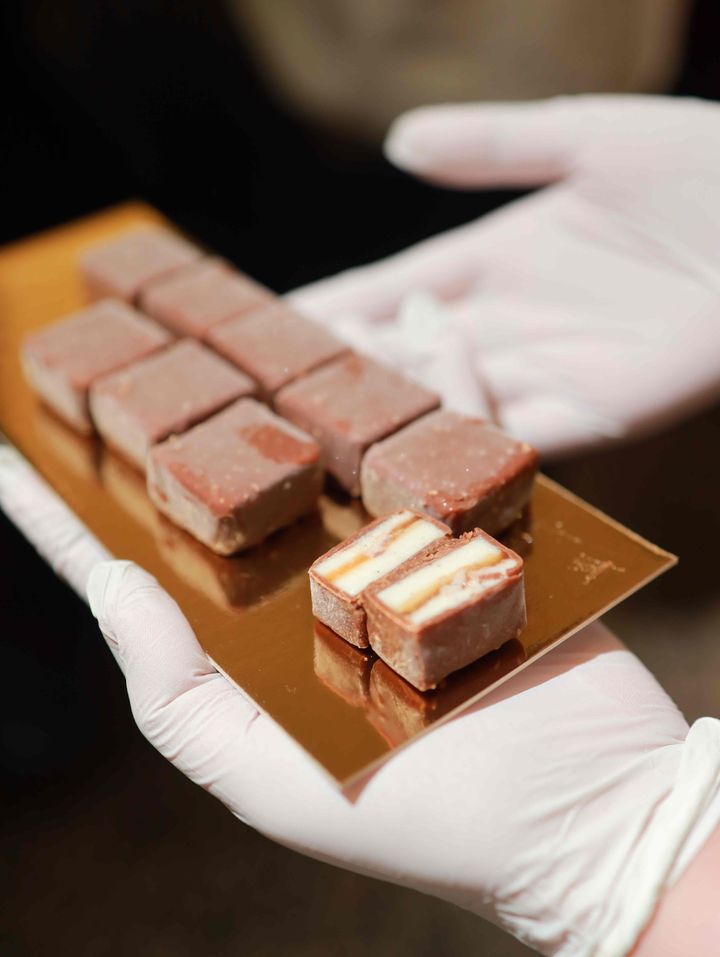 「フレーズ」と「シトロン」のグラス&ソルベは、果実のフレッシュさを存分に活かしたスイーツ。濃厚な味わいの中に、果実由来の酸味がほどよく広がる逸品です。今回はイベント限定で、贅沢にチョコレートがけで提供されました。