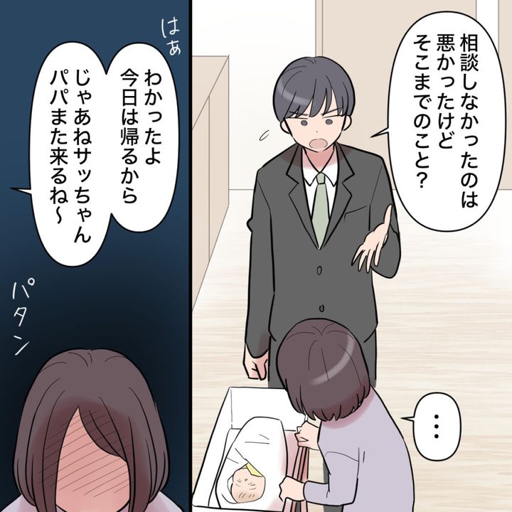 「相談しなかったのは悪かったけどそこまでのこと?」とショウタは私がショックを受けていることが理解できないようです。返す言葉も見つかりませんでした。「わかったよ、今日は帰るから。じゃあねサッちゃん、また来るね~」とナナちゃんに『違う名前』で声をかけ、ショウタは帰っていきました。