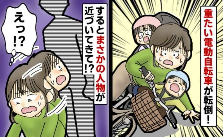 「重い…」子ども2人を乗せた電動自転車が横転!身動きが取れない私の背後に現れたのは、まさかの!?