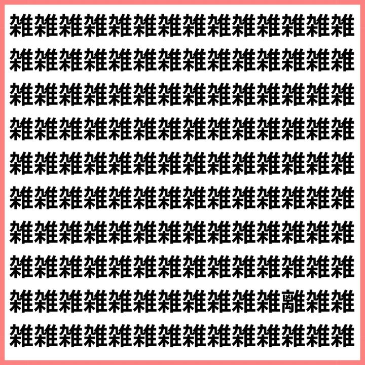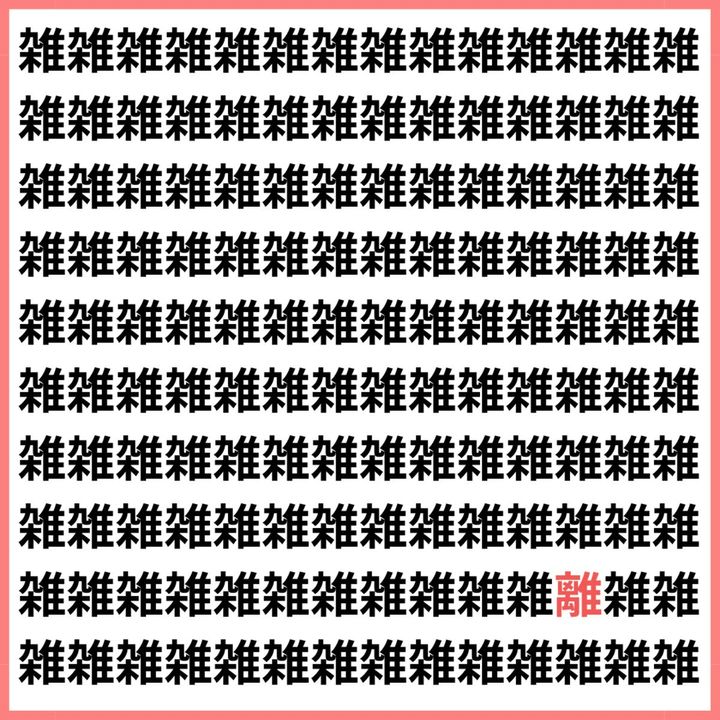 激ムズ!雑だらけの中に違う字【1文字だけ違う】漢字間違い探しで脳トレ、何秒で見つかる?